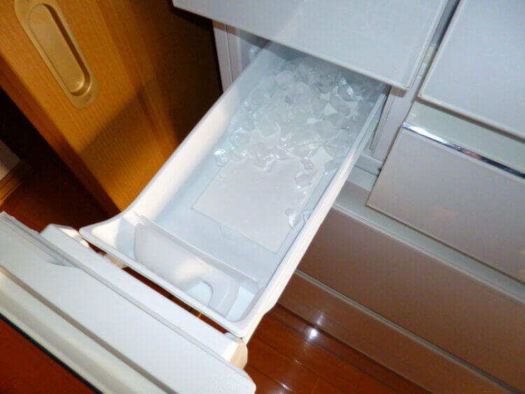 自動製氷機能の付いている冷蔵庫も多いですが、冬は氷を使う機会が少ないため、古い氷は定期的に処分するか、製氷機能を止めるのが衛生的にも良いと思います。