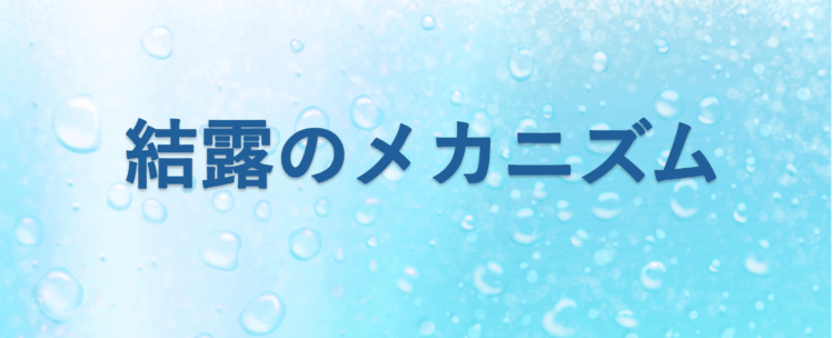 あたたかい水分をたくさん持った空気が外気との温度差のある場所で冷やされることで、今まで持てていた水分がもてなくなり水滴として付着します。
