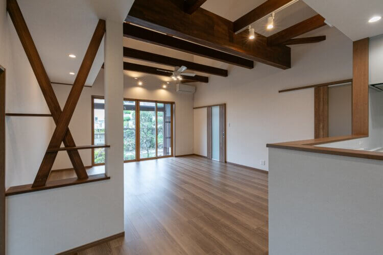 - ダイナミックに梁をみせた開放的なLDK